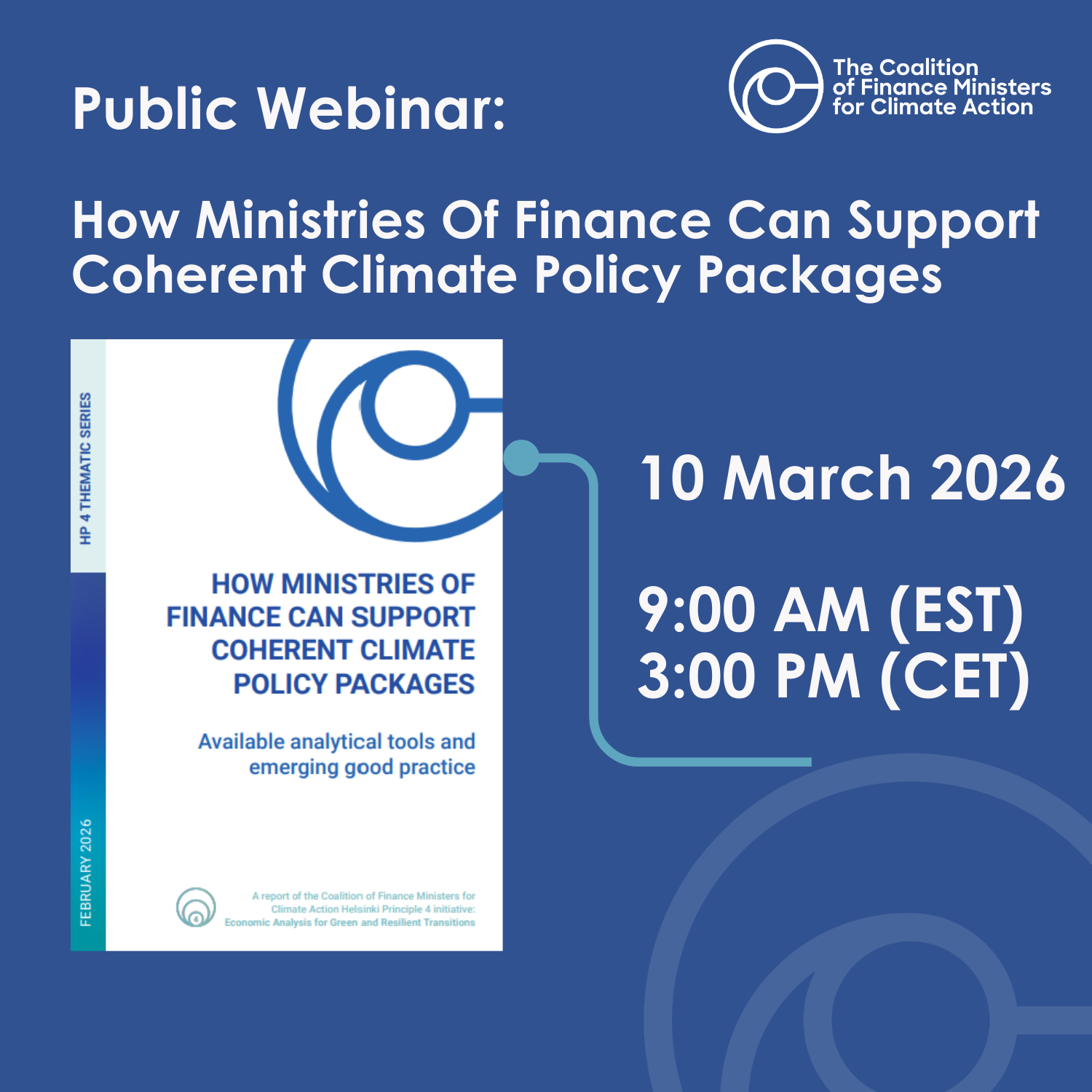 Against this backdrop, the Coalition of Finance Ministers for Climate Action recently published its report “How Ministries of Finance Can Support Coherent Climate Policy Packages”, highlighting how coordinated, multi-instrument approaches can deliver both climate and economic outcomes. To bring these insights into practice, the Coalition convened a public webinar bringing together senior officials from ministries of finance, international organizations, and research institutions. The discussion explored how coherent policy packages can drive investment, strengthen fiscal resilience, and support economic competitiveness, while underscoring the pivotal, yet still underutilized, role of finance ministries in climate action.