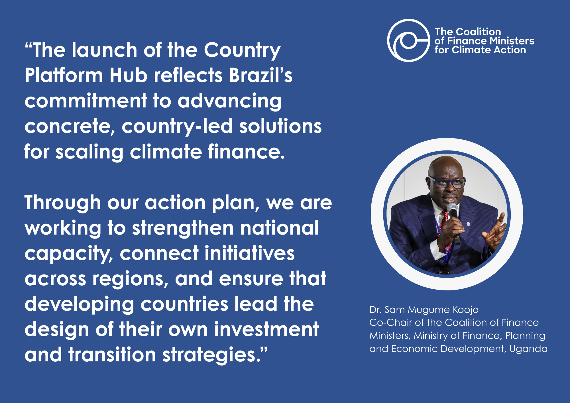 Dr. Sam Mugume Koojo, Deputy to the Uganda Finance Minister, Co-Chair of Coalition of Finance